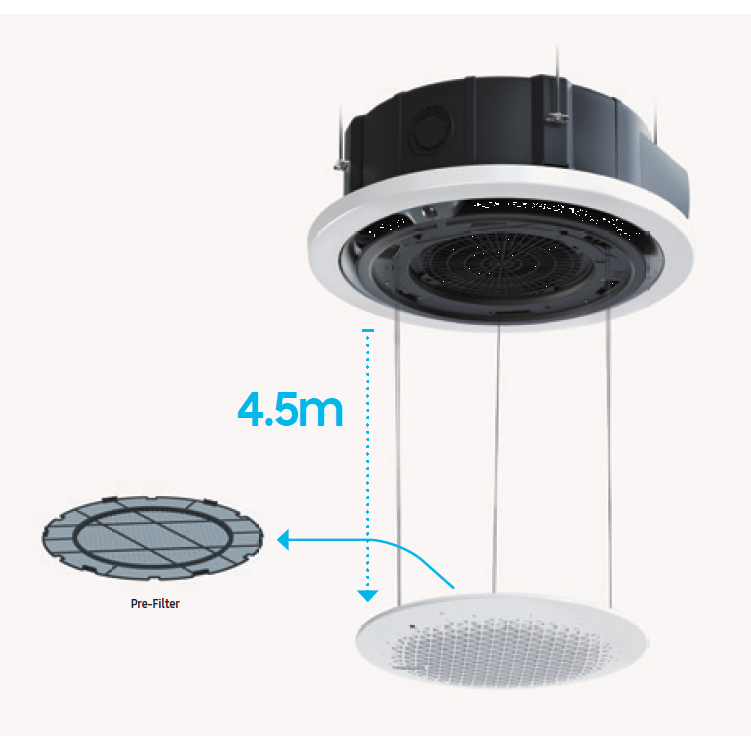 Kasetinio tipo kondicionieriaus apdaila su automatinio nusileidimo funkcija, skirta 360 tipo kasetėms.
