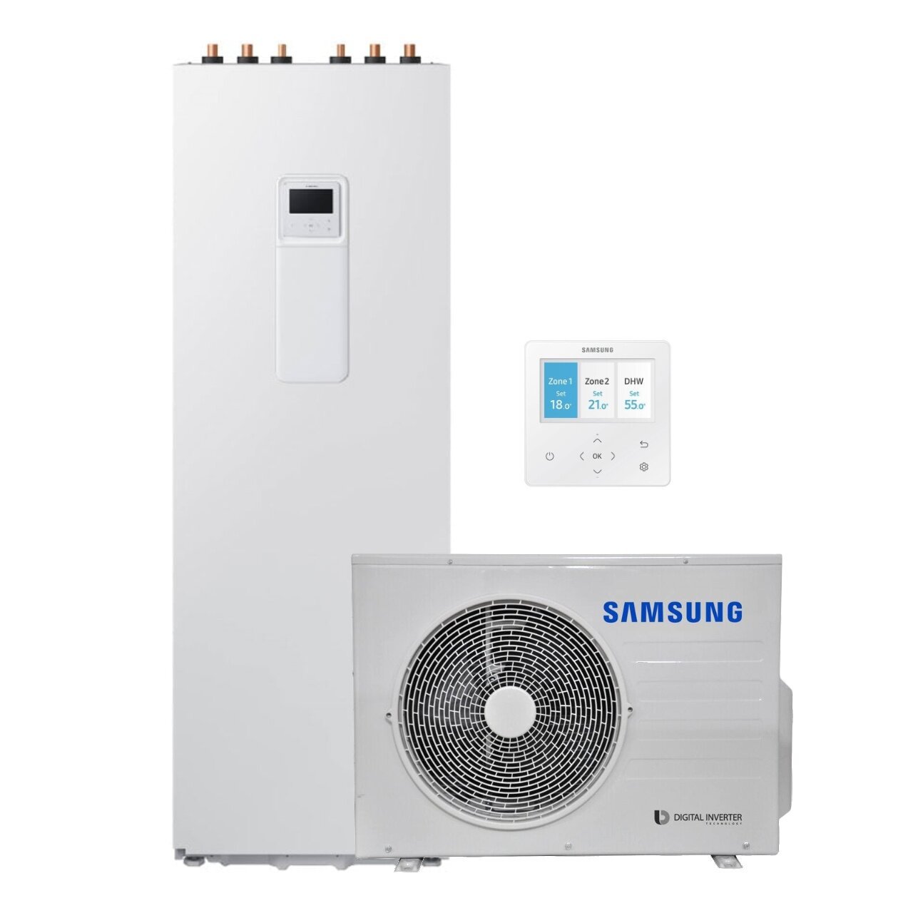 Samsung EHS ClimateHub serija siūlo modernius „viskas viename” sprendimus, kuriuose kompaktiškame korpuse suderinta šilumos siurblio vidinė dalis ir karšto vandens talpa. Šios linijos įrenginiai pasižymi pažangiu valdymu, leidžiančiu kontroliuoti dvi skirtingas šildymo zonas bei integruoti sistemą į išmaniuosius namus per „SmartThings” programėlę. Tylaus veikimo režimas užtikrina ramybę, o Eurovent sertifikatai patvirtina įrenginių patikimumą ir atitiktį griežtiems europiniams standartams. Tai idealus pasirinkimas ieškantiems estetiško, tylaus ir efektyvaus šildymo bei karšto vandens ruošimo sprendimo.