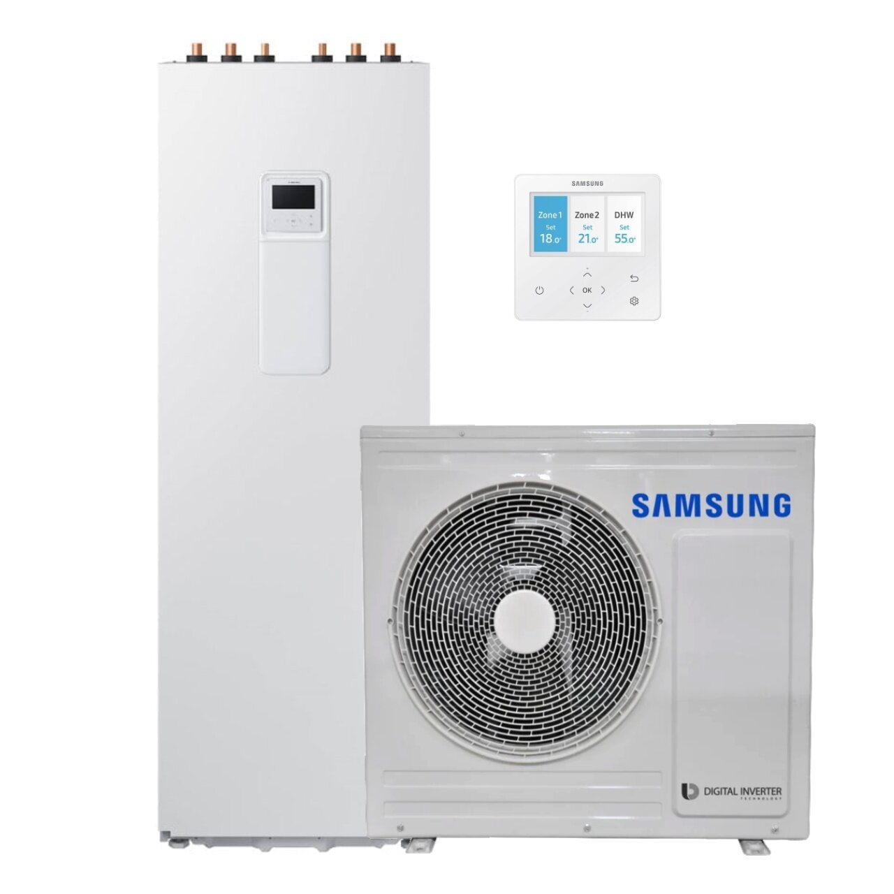 Samsung EHS ClimateHub serija – tai inovatyvūs „viskas viename“ sprendimai, kuriuose kompaktiškai sujungtas šilumos siurblys, vandens talpykla ir valdymo automatika. Ši produktų linija išsiskiria pažangiu 2 zonų valdymu, leidžiančiu atskirai reguliuoti temperatūrą skirtingose patalpose, bei tyliu 4 pakopų veikimo režimu, užtikrinančiu ramybę. Įrenginiai pritaikyti ateities energetikai su Smart Grid ir saulės elektrinių integracija, o per SmartThings programėlę vartotojai gali stebėti ir valdyti energijos suvartojimą iš bet kurios vietos. Samsung siūlo patikimą technologiją su nerūdijančio plieno talpomis ir lengvu aptarnavimu, patvirtintą tarptautiniais Eurovent bei Keymark sertifikatais.